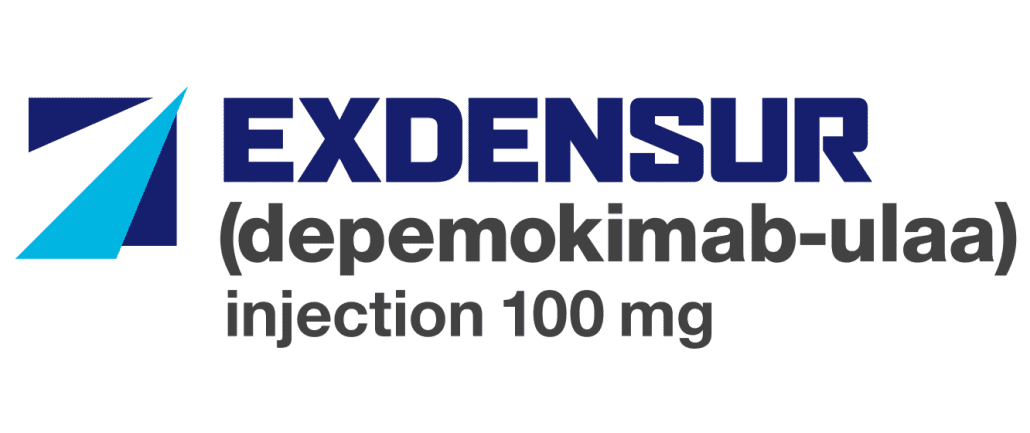 Exdensur (depemokimab-ulaa) injection, for subcutaneous use, is a prescription biologic medicine classified as an interleukin‑5 (IL‑5) antagonist monoclonal antibody (humanized IgG1 kappa). It is indicated as an add‑on maintenance treatment for severe asthma characterized by an eosinophilic phenotype in adult and pediatric patients 12 years of age and older whose disease remains uncontrolled on standard therapies. Exdensur is supplied as an injection solution for subcutaneous administration and is not intended for the relief of sudden breathing problems, acute bronchospasm, or status asthmaticus.